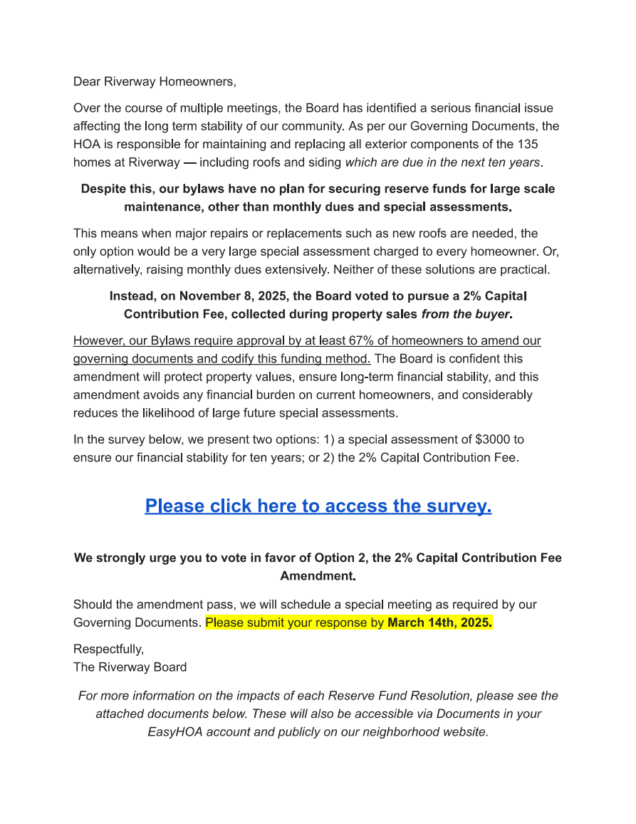 Reserve Fund Ballot Notification